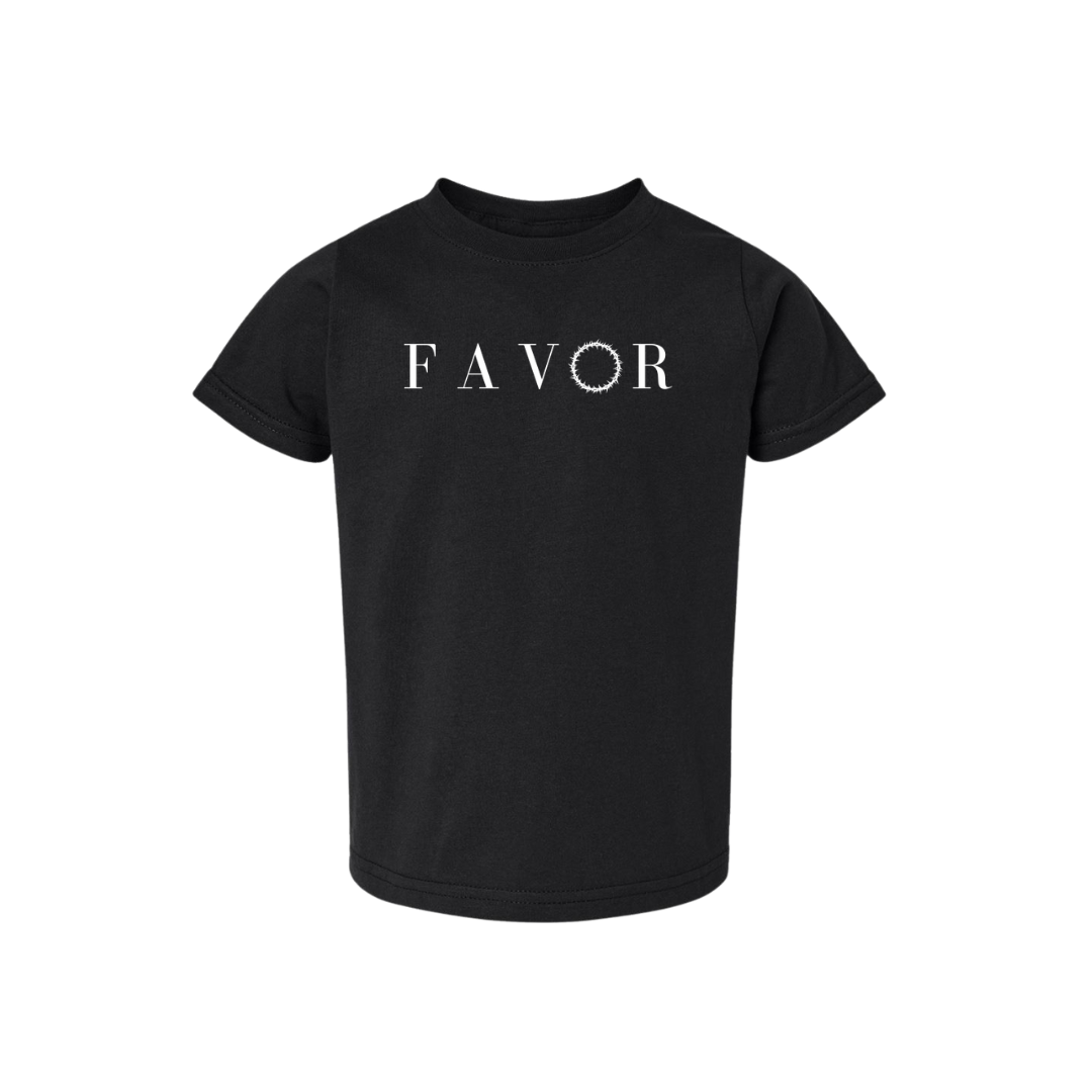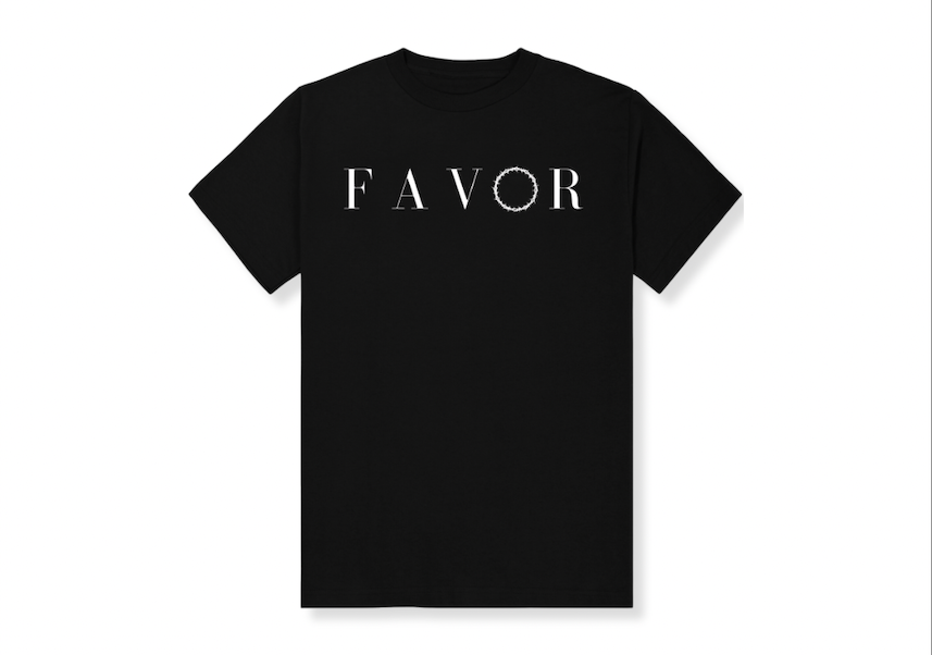 The Crown of Favor “Favor” Tee features a crown of thorns design inspired by Psalm 30:5. Black unisex shirt, 100% cotton—wear grace, wear redemption.